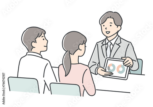 若いカップルに案内をする営業担当者