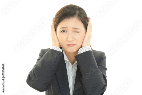 耳を押さえる女性
