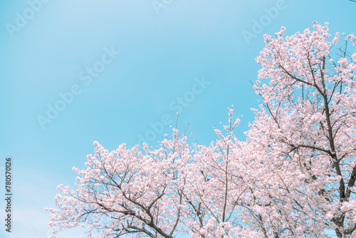 青空の下満開に咲いた桜の花