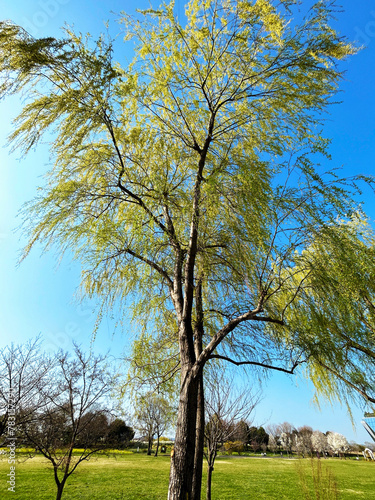 青空と柳の木