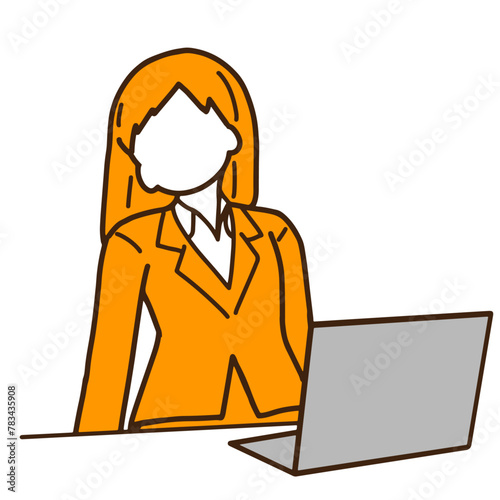パソコンの仕事に疲れたビジネスウーマンのイラスト