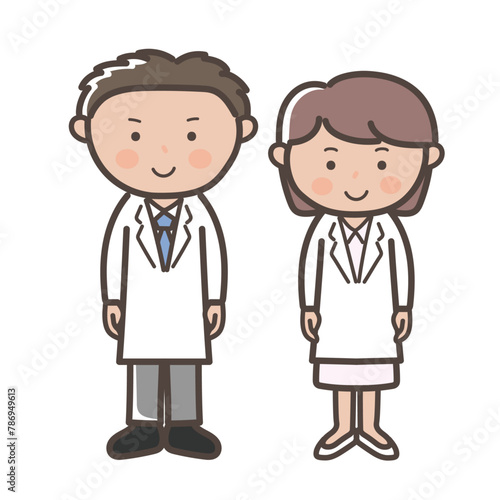 正面を向いて立つ男女医師_看護師の全身イラスト