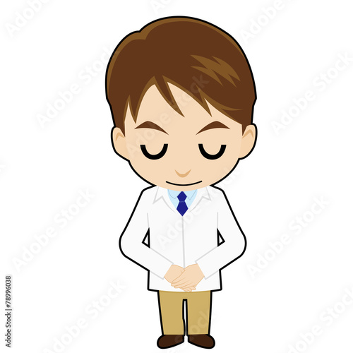 お辞儀する白衣の男性