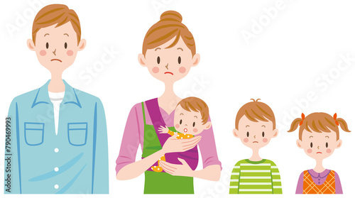 家族 親子 横並び 不安 心配な表情