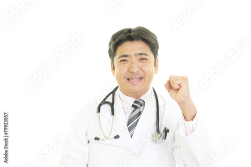 ガッツポーズの医師