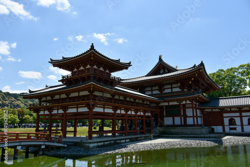 平等院鳳凰堂と池に映る青空