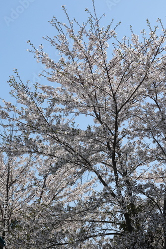 満開の桜を見上げる