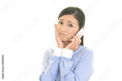 スマートフォンで会話中の女性