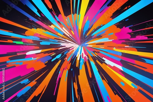 いびつなサンバースト背景画像。カラフルインクが高速で駆け抜ける