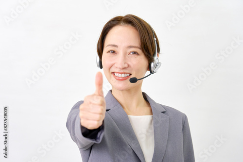 グッドサインをするオペレーター 白背景