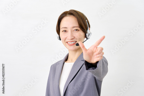 チェックサインをするオペレーター 白背景