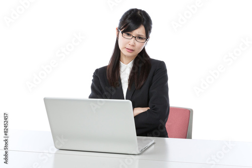 business, sweet, personal computer, woman, young, puzzle, light, pretty, japanese, beauty, table, seat, clean, office, meeting, work, long hair, impatience, white background, salaried employee, suit, black hair, cyberspace, asian, desk, notebook, contemplate, employee, corporation, thought, earnest, ponytail, problem, glasses, shirt