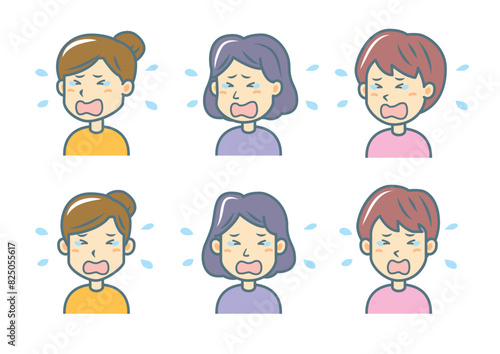 泣く女性のイラストセット