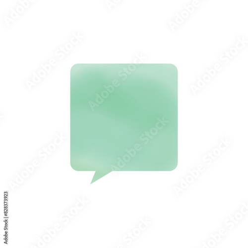 緑色正方形吹き出し_水彩風_左向き単品