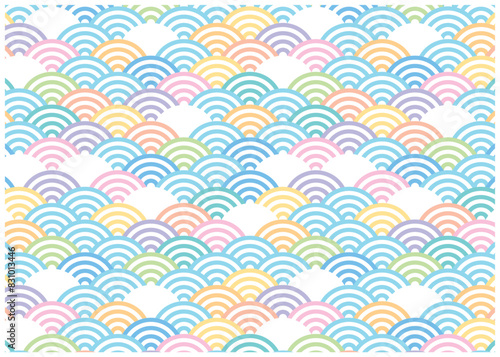 カラフルな青海波のシームレスパターン 和柄 背景