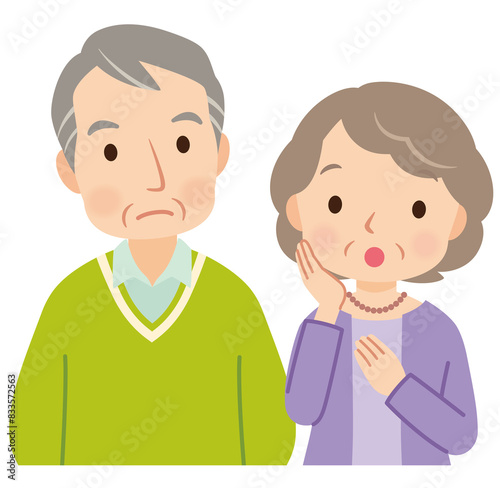 悩む表情の高齢者夫婦 仲の良い高齢者夫婦 シニア