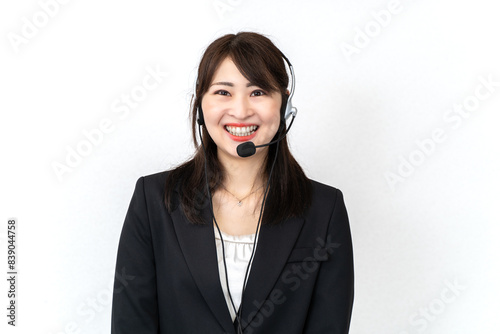 ヘッドセットを付けて案内をする女性