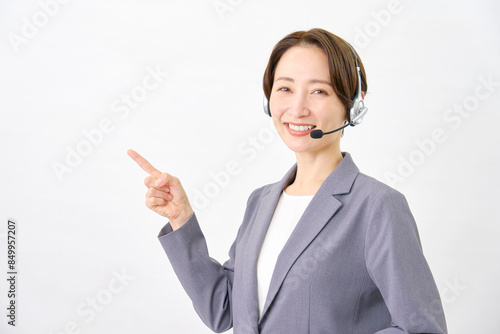 左を指差すオペレーター 白背景
