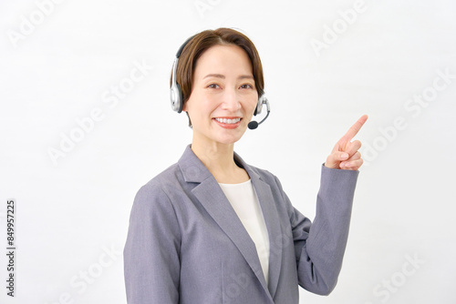 右を指差すオペレーター 白背景