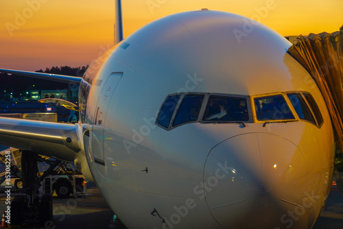 飛行機と夕暮れ