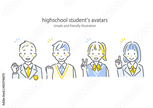 ポジティブな高校生 シンプルでお洒落な線画イラスト