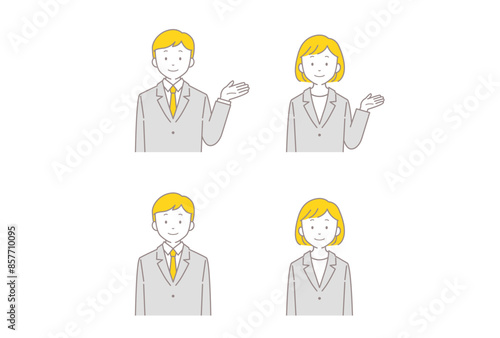 ポイントを説明するスーツ姿の若い男女セットのベクターイラスト