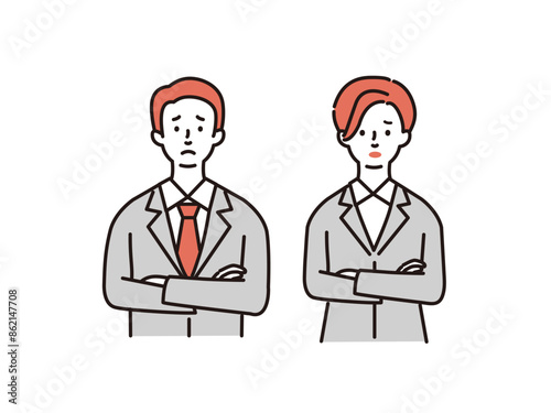 スーツ姿で腕組みをする男女