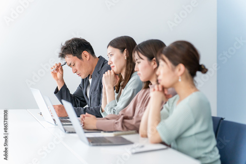 会社・オフィスで仕事する男女(ビジネスマン・ビジネスウーマン)