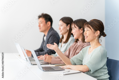 会社・オフィスで仕事する男女(ビジネスマン・ビジネスウーマン)