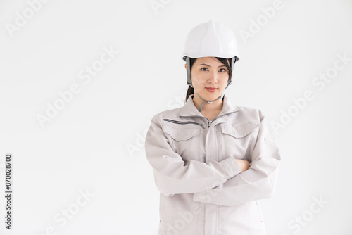 作業着姿の女性 怒る