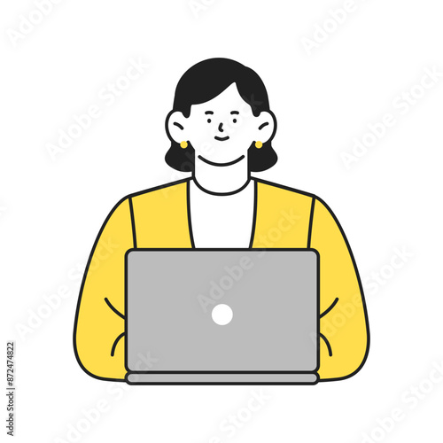 ノートパソコンを使うポジティブな表情のビジネスパーソンの女性イラスト