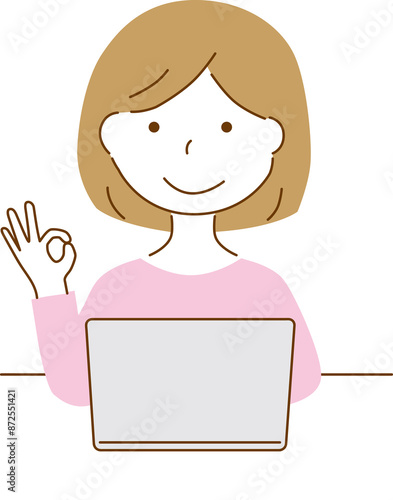 パソコン オッケーサインをする女性のイラスト素材