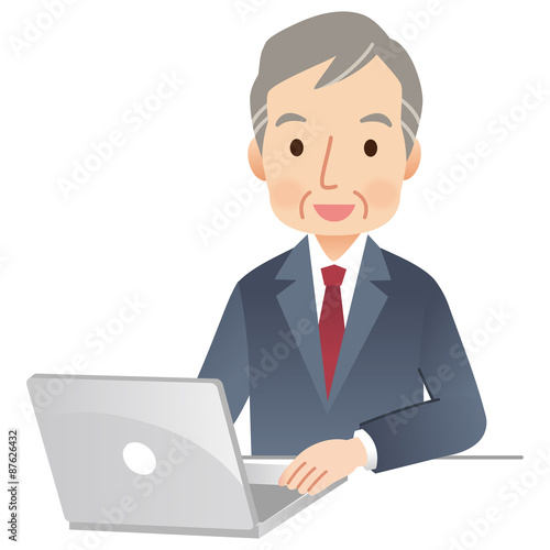ビジネスマン シニア男性 パソコン操作