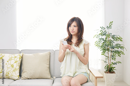 携帯電話を使う女性