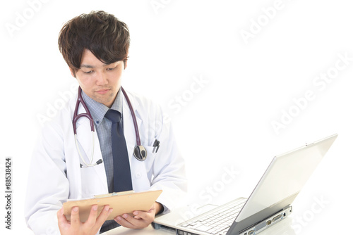 ノートパソコンで仕事中の医師