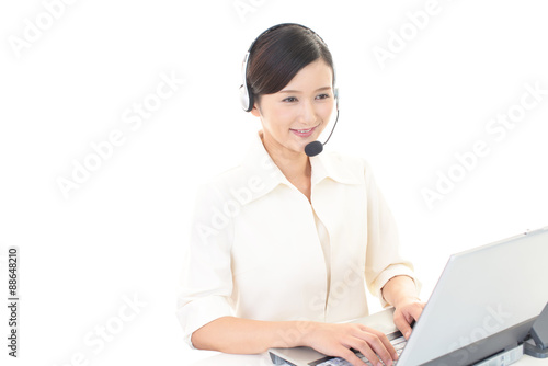 woman, people, operator, people, call center, customer service, business, work, office, sweet, pretty, young, adult, personal computer, notebook, cyberspace, smile, smile, headset, telemarketing, work, call, woman, corporation, suit, shirt, lively, happy, happiness, health, cosmetic, model, beauty, girl, fun, expression, alone, japanese, asian, copy space, waist up, white background