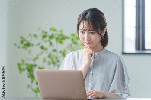 オフィスでパソコンを使って働くビジネスマン(女性・カジュアルビジネス)