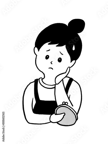 財布を持って悩んでいる女性のイラスト