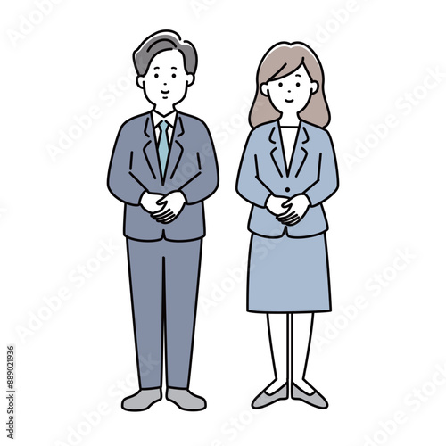 手を合わせて会釈をするスーツ姿の男女