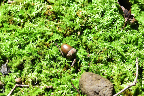 苔の上に落ちたどんぐり