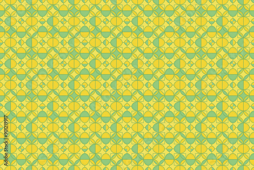 黄色の幾何学模様、シームレスパターン背景イラスト