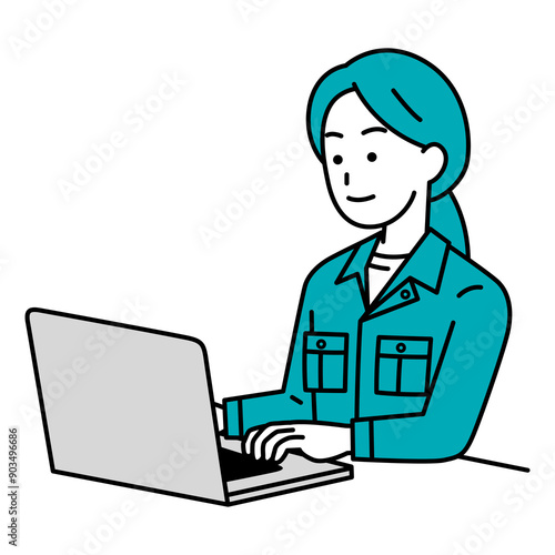 ノートパソコンで仕事をしている作業員の女性
