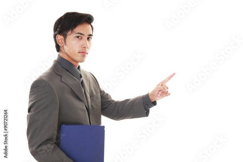 プレゼンをする笑顔のビジネスマン