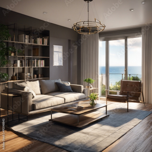 大きな窓のあるリビングルーム
