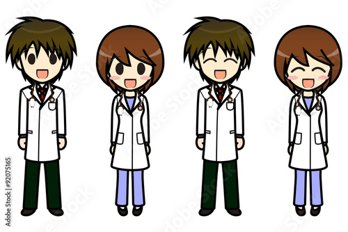 シンプルキャラクター 会話・表情イラスト集 医師 男女 直立ポーズ