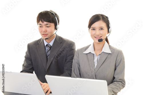 woman, man, people, people, operator, call center, customer service, business, work, businessman, colleague, fellow, boss, teamwork, office, sweet, pretty, young, adult, personal computer, notebook, cyberspace, smile, smile, headset, telemarketing, work, working girl, call, corporation, lively, happy, happiness, health, model, beauty, good-looking, fun, expression, two people, japanese, asian, copy space, waist up, white background