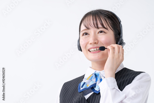 operator, woman, girl, business, call, headset, call center, support, 30s, speaking, conversation, call, microphone, service, white, white background, ribbon, uniform, vest, refreshing, smile, handling, personal computer, insurance, security, inquiry, respond, question, japanese, asian, natural, nature, office, work, work, byte, sideline, service, client