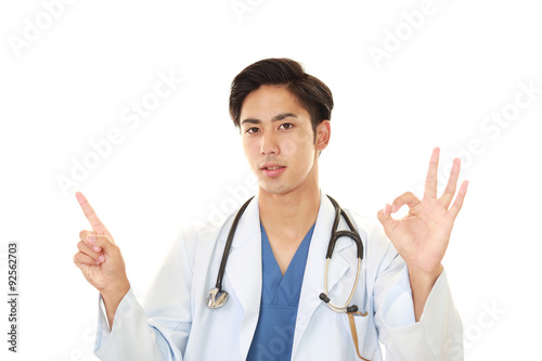 ガッツポーズの医師