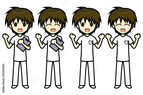 シンプルキャラクター 会話・表情イラスト集 看護師 男性 ガッツポーズ1