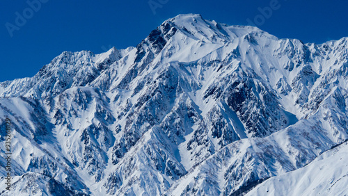 真冬の北アルプスと快晴の空 長野県白馬村